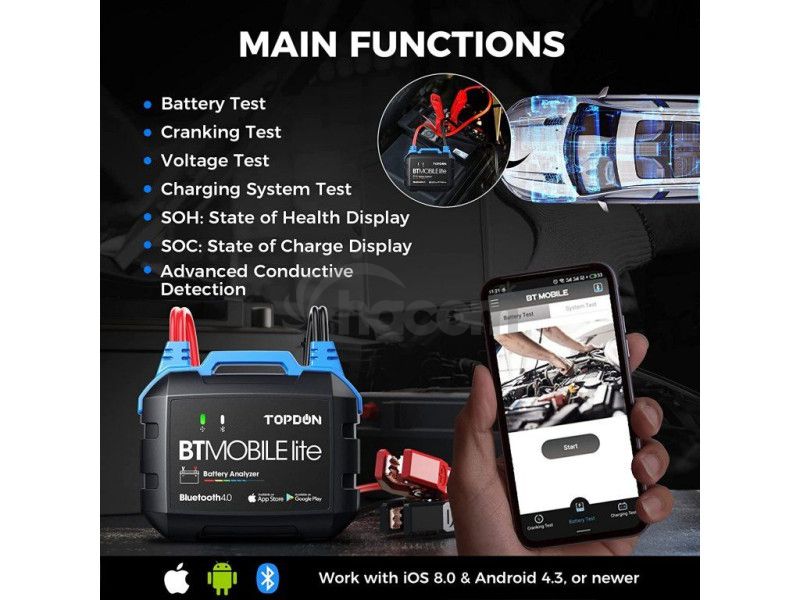 Tester TOPDON BT Mobile Lite je nepostrádateľným pomocníkom pre všetkých majiteľov akéhokoľvek vozidla a nevyhnutnosťou pre všetkých majiteľov firiem s vozovým parkom. Pokiaľ chcete mať kompletný prehľad o vozidlách, battery tester BT Mobile lite je tou najlepšou voľbou.