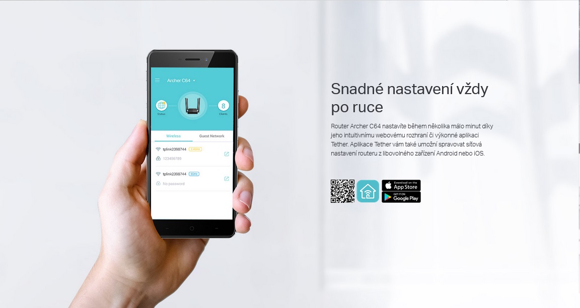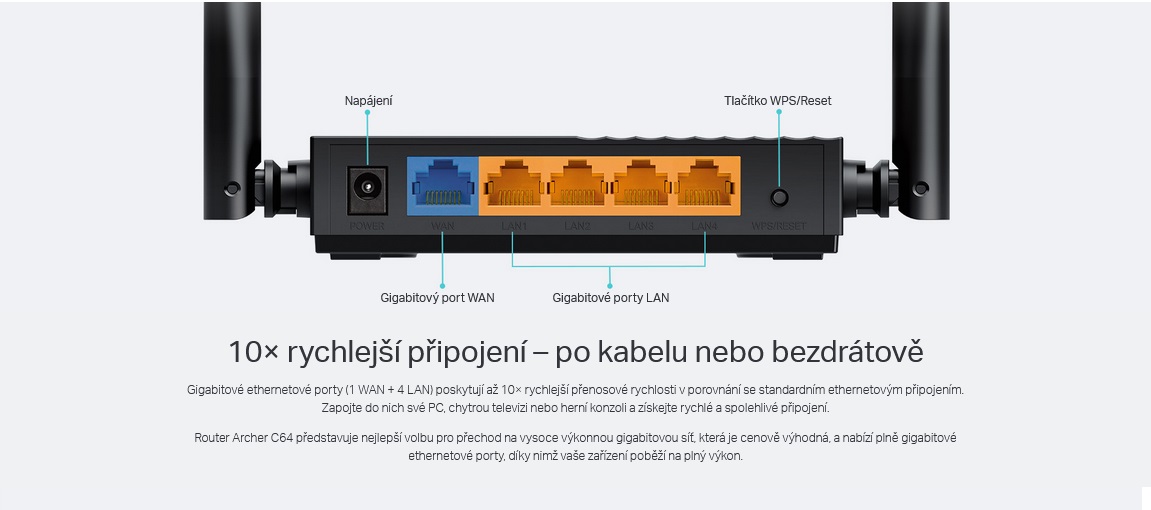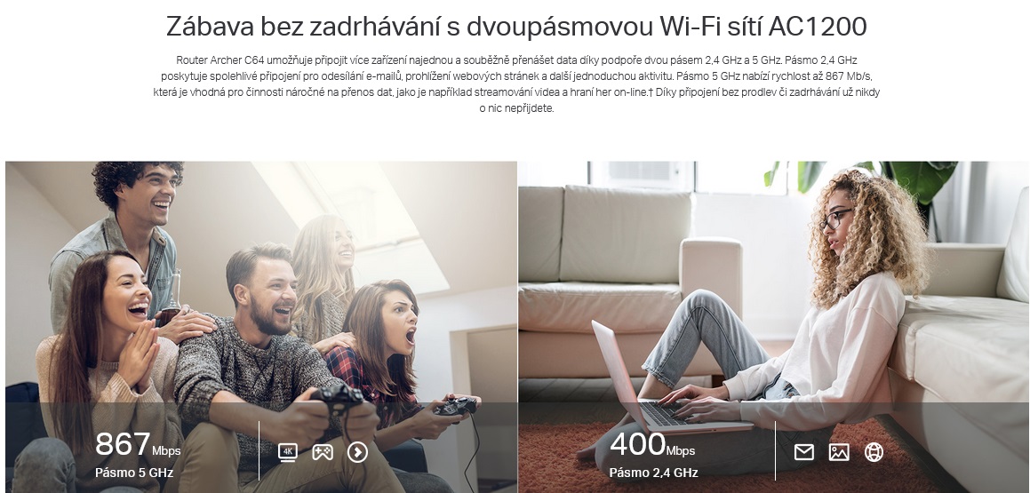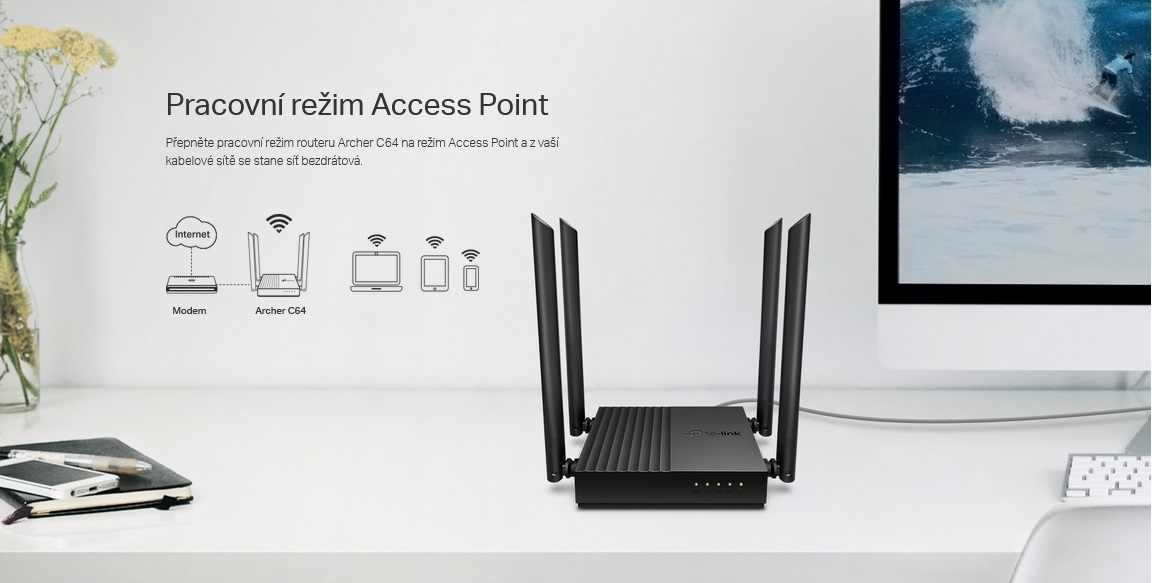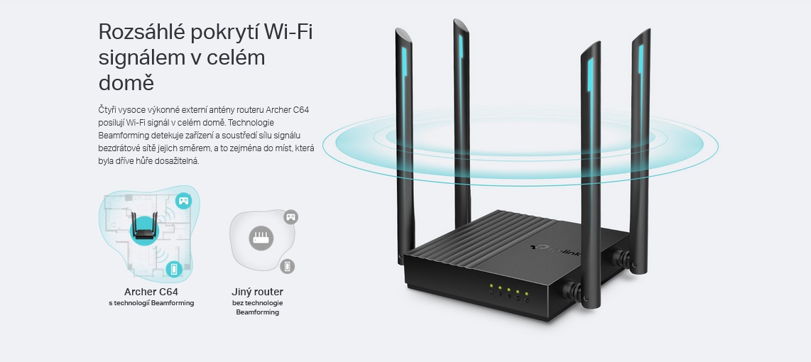 - TP-Link Archer C64 AC1200 WiFi Dualband Router, 5xGb, 4x anténa, Agile Config Archer C64