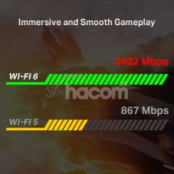 * Bezkonkurenčná rýchlosť Wi-Fi 6 - prekonáva gigabitovú bariéru rýchlosťou až 2402 Mb / s (5 GHz) + 574 Mb / s (2,4 GHz)