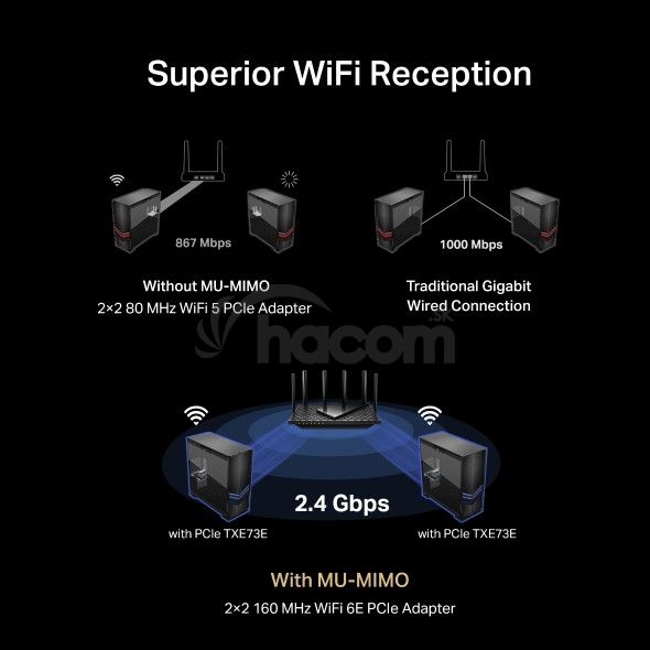 TP-Link Archer TXE73E – Wi-Fi 6E PCIe adaptérTento adaptér ponúka bezkonkurenčnú trojpásmovú rýchlosť až 2402 Mb/s (6 GHz),