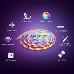 Smart Light Strip, MulticolorSPEC: 2.4 GHz Wi-Fi, 802.11b/g/n, jeden 16.4 ft/5m RGBW+IC LED light strip, 1000lm, 2500K ~ 6500K tunable biely, 12V/1A power adaptér, PU Coating Water