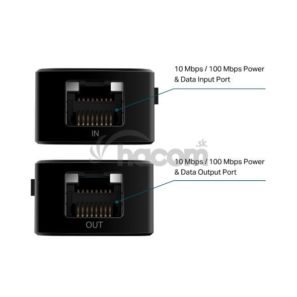 *Rozširuje sieťové pripojenie PoE/PoE+ o ďalších 100 m – 250 m (režim 10 Mb/s) od zariadenia zdroja napájania PoE
