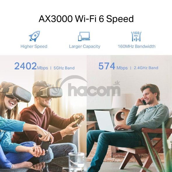 *Dvojpásmová Wi-Fi 6 – 2402 Mb/s (5 GHz) + 574 Mb/s (2.4 GHz)