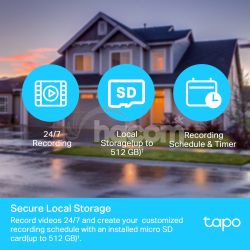 - Flexibilné možnosti úložiska – Ukladajte nahrané videá na nainštalovanú kartu microSD (až 512 GB) alebo použite službu cloudového úložiska Tapo Care.