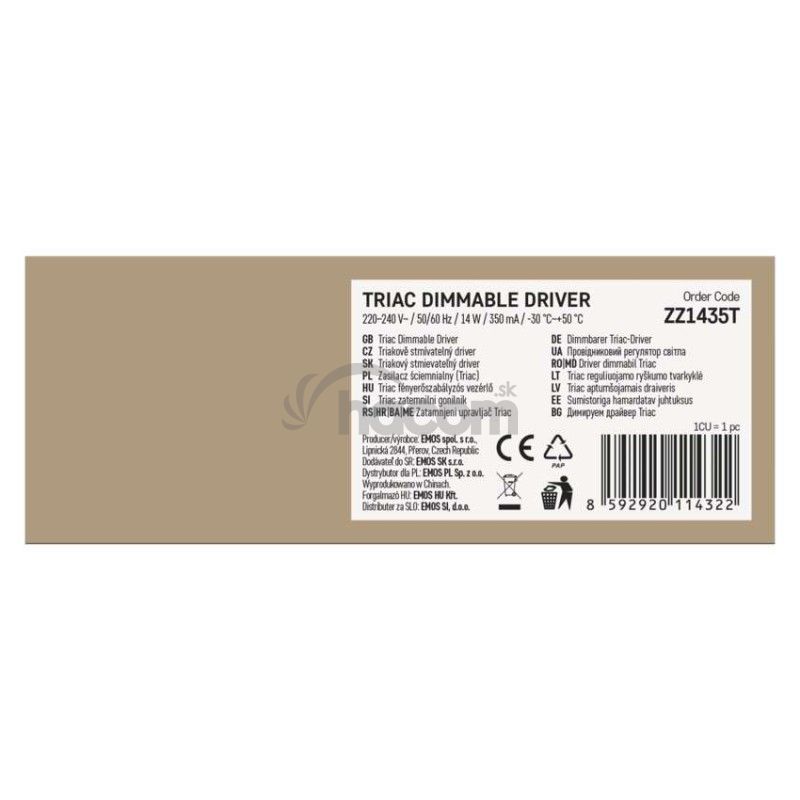 Triakový stmievateľný ovládač pre LED svietidlo 350mA 14W ZZ1435T