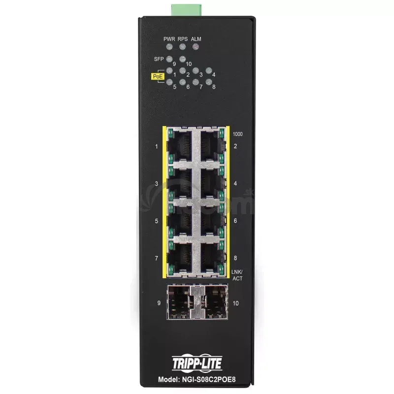 - Tripplite Prepínač 8x zdroj Lite Manag. Eth. Switch,10/100/1000Mb/s,2GbE SFP,PoE+ 30W,-10°+60°C,DIN NGI-S08C2POE8