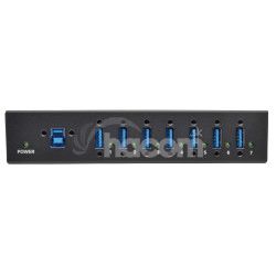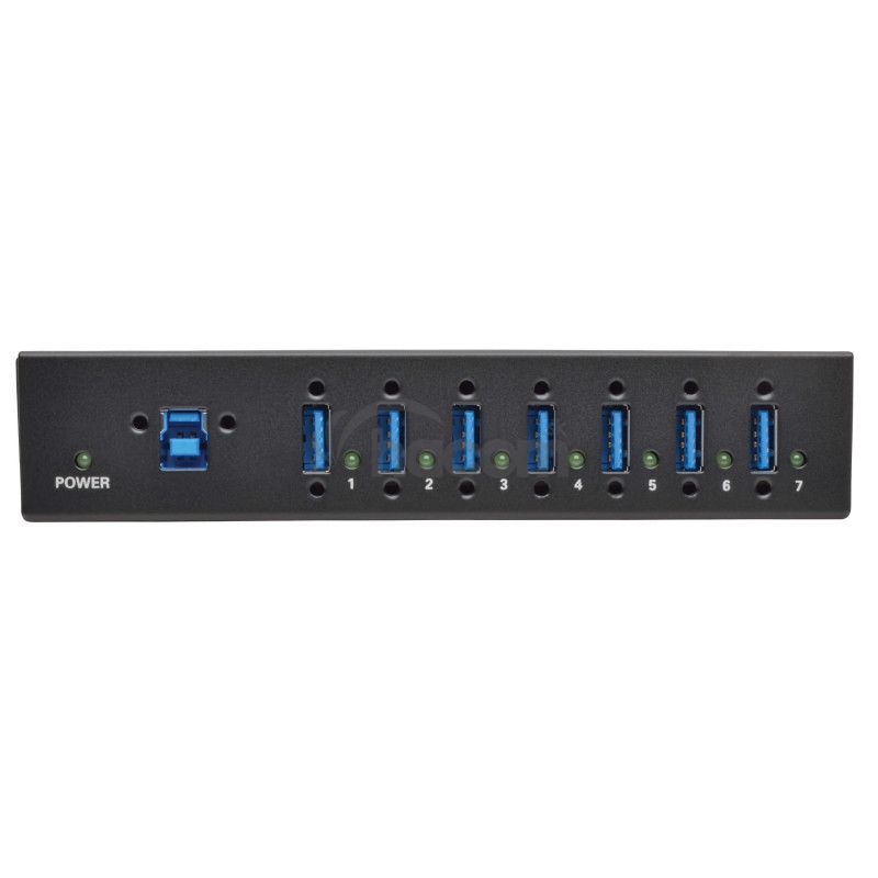 7-Port Industrial-Grade USB 3.0 SuperSpeed Hub - 20 kV ESD Immunity, Metal Housing, MountableOdolný priemyselný rozbočovač pridáva do počítača 7 portov USB 3.0 na pripojenie priemyselných tlačiarní, senzorov a ďalších zariadení USB.