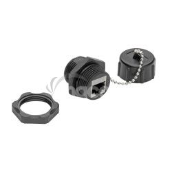 RJ45 Bulkhead Coupler pre Cat5/Cat6, Female to Female, Shielded, Industrial, Dust Cap - IP68, TAASpája dva prepojovacie káble Cat5e/6 v priemyselnom prostredí, ktoré si vyžadujú ochranu proti prachu, nečistotám a vlhkosti.