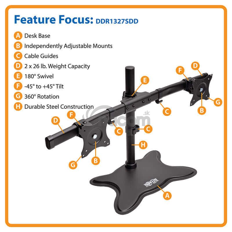 - Tripplite Stojan na montáž monitora na stôl, pre 2x 13"…27" monitory s plochou obrazovkou DDR1327SDD
