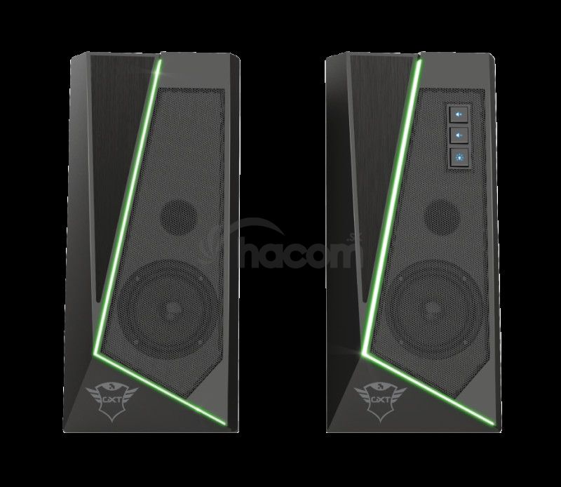 Trust GXT 609 Zoxa RGB Illuminated Speaker Set. Štýlová sada stereofónnych reproduktorov s osvetlením RGB a ľahko dostupnými ovládacími prvkami. S elegantným dizajnom a jemným RGB osvetlením je Trust GXT 609 Zoxa štýlovým doplnkom každého stola. Okrem toho sa táto sada stereo reproduktorov ľahko používa a nepotrebuje ani zásuvku. Zapnú sa automaticky pri zapnutí počítača.kľúčové vlastnosti