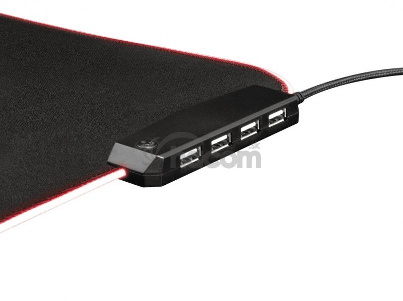 TRUST GXT 765 Glide-Flex RGB Mouse Pad with USB Hub. Flexibilné podložka pod myš s hranami osvetlenými RGB a 4 porty USB.kľúčové vlastnosti