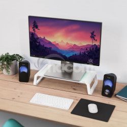 Stojan na monitor z tvrdeného sklaUžite si ergonomickú a produktívnu prácu vďaka veľkej ploche 50x20 cm, ktorá je dostatočne veľká na to, aby pojala akýkoľvek druh notebooku alebo obrazovky pre lepší pozorovací uhol.