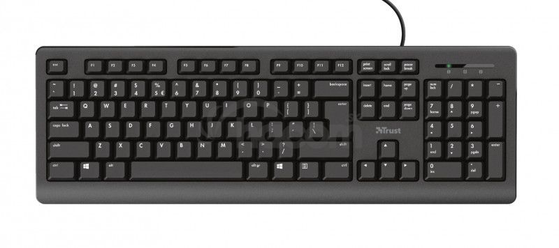 Trust Primo Keyboard klávesnica plnej veľkosti s tichými klávesmi a dizajnom odolným proti poliatiu. Klávesnica prichádzajú vo všetkých tvaroch a veľkostiach, ale čo keď potrebujete iba základné funkcie? Trust Primo to presne robí. Má rozloženie v plnej veľkosti, klávesy odolné proti poliatiu a je výškovo nastaviteľné. A vďaka tichým klávesám budete písať celé hodiny, bez toho aby ste obťažovali svojich spolupracovníkov.technické parametre