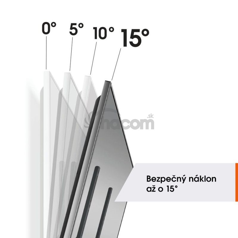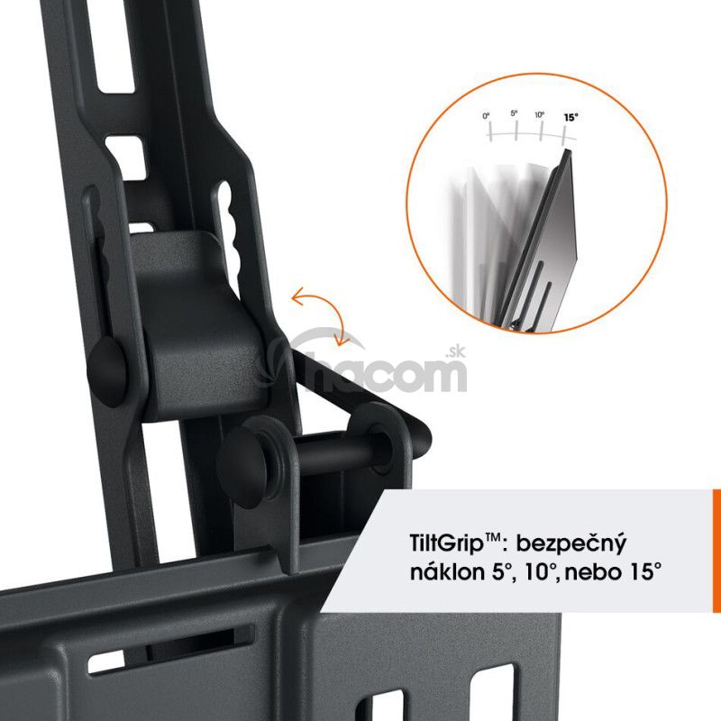 S týmto nástenným držiakom televízora QUICK Tilt si vyberáte jednoduchú inštaláciu a pohodlie počas jeho sledovania. Inštalácia je veľmi jednoduchá, televízor je na svojom mieste iba za 20 minút. Naklonením držiaka o 5 °, 10 ° alebo 15 ° ľahko nastavíte ideálny pozorovací uhol, ktorý je pohodlnejší, ak je TV namontovaná o niečo vyššie na stene. Držiak je vhodný pre televízory s uhlopriečkou od 19 do 43 palcov a hmotnosťou do 15 kg.
