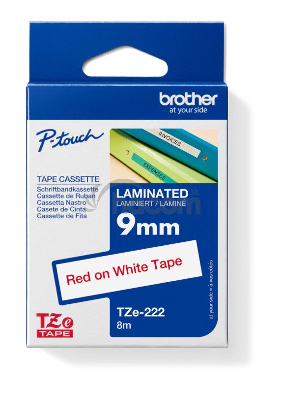 Originálna kazeta s páskou Brother TZe-222 - červená tlač na biele, šírka 9 mmOriginálna kazeta s laminovanou páskou TZe-222 kompatibilná so širokým radom tlačiarní Brother P-touch je obzvlášť všestranná vďaka svojej ľahko čitateľnej červenej a bielej farbe - ideálna pre domácnosť, kanceláriu a ďalšie pracoviská.
