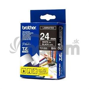 Originálna kazeta s páskou Brother TZe-355 - biela tlač na čierne, šírka 24 mmOriginálna kazeta s laminovanou páskou TZe-355 kompatibilná so širokým radom tlačiarní Brother P-touch je obzvlášť všestranná vďaka svojej ľahko čitateľnej bielej a čiernej farbe - ideálna pre domácnosť, kanceláriu a ďalšie pracoviská.