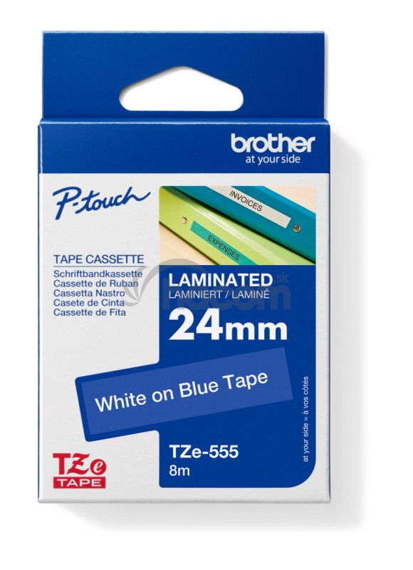 Originálna kazeta s páskou Brother TZe-555 - biela tlač na modrej, šírka 24 mmOriginálna kazeta s laminovanou páskou TZe-555 kompatibilná so širokým radom tlačiarní Brother P-touch je obzvlášť všestranná vďaka svojej ľahko čitateľnej bielej a modrej farbe - ideálna pre domácnosť, kanceláriu a ďalšie pracoviská.