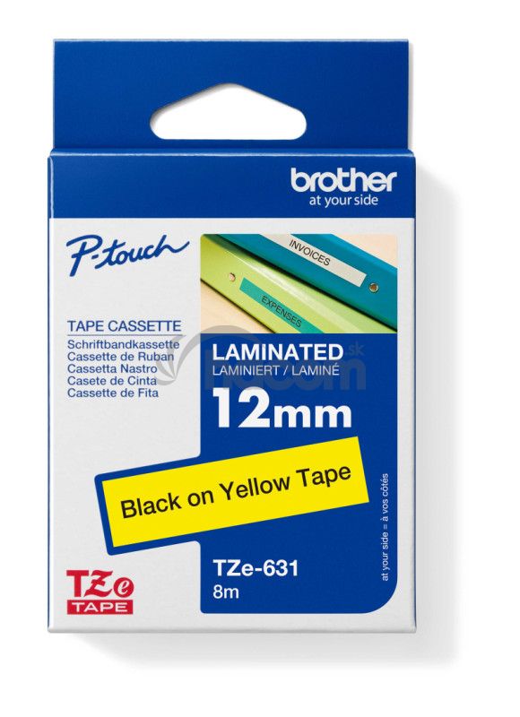 Originálna kazeta s páskou Brother TZe-651 - čierna tlač na žlté, šírka 12 mmOriginálna kazeta s laminovanou páskou TZe-631 kompatibilná so širokým radom tlačiarní Brother P-touch je obzvlášť všestranná vďaka svojej ľahko čitateľnej čiernej a žltej farbe - ideálna pre domácnosť, kanceláriu a ďalšie pracoviská.