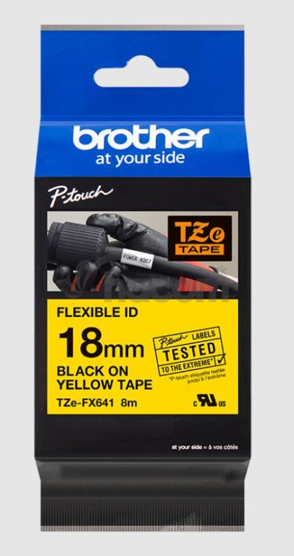 Ideálne na vytváranie identifikačných štítkov pre káble, vodiče, PVC rúrky alebo iné valcovité tvary. Špeciálne lepidlo pásky Brother TZe-FX641 s čiernou tlačou na žltom podklade zaisťuje, že vaše dôležité štítky budú mať dlhú životnosť. Kompatibilný s tlačiarňami štítkov P-touch, ktoré majú logo TZ alebo TZe na kryte kazety s páskou.*Šírka 18 mm, dĺžka 8 m
