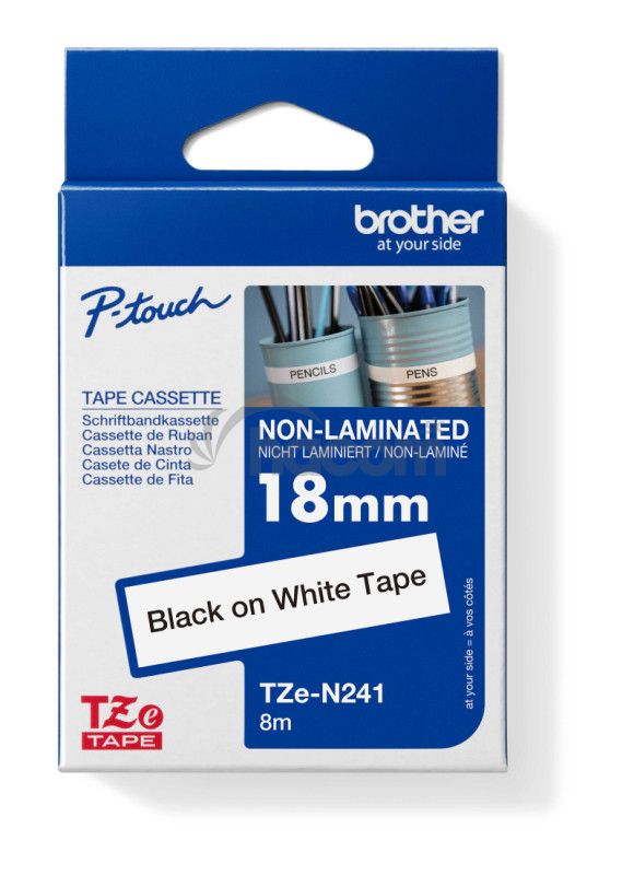 Kazeta s páskou TZE-N241 je určená pre tlačiarne štítkov Brother, šírka 18 mm, podklad: biely, písmo: čierne.kazeta TZE-N241 s páskou, ktorá je určená do vybraných tlačiarní samolepiacich štítkov Brother P-touch. Páska meria na šírku 18 mm. Podklad pre tlač je biely a tlačené písmo čierne.
