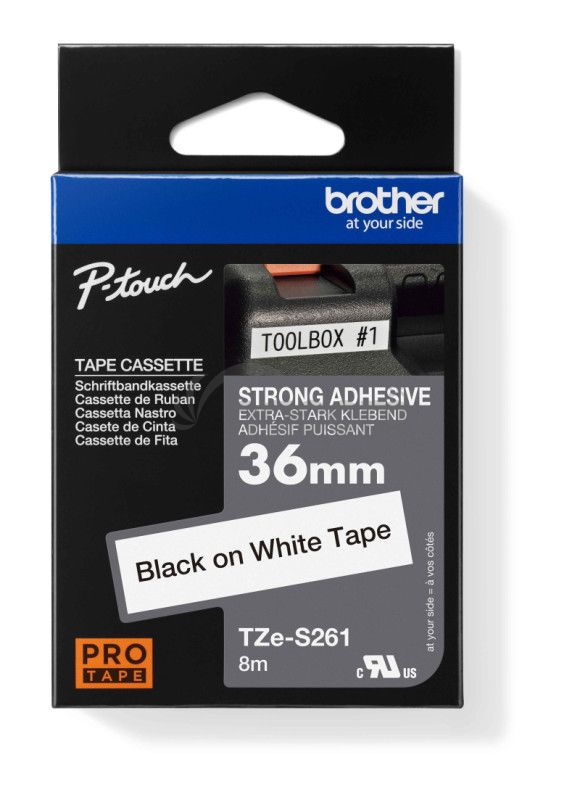 Originálna kazeta s laminovanou páskou TZe-S261 kompatibilná so širokým radom tlačiarní Brother P-touch je obzvlášť všestranná vďaka svojej ľahko čitateľnej čiernej a bielej farbe - ideálna pre domácnosť domácnosti, kanceláriu a ďalšie pracoviská.*Šírka 36 mm, dĺžka 8 m