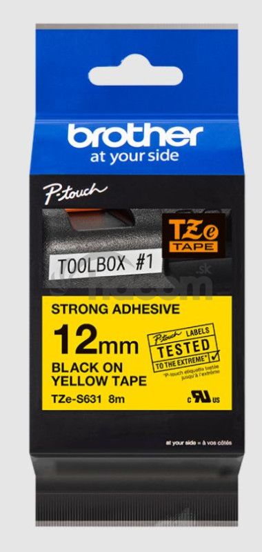 Originálna kazeta s laminovanou páskou TZe-S631 kompatibilná so širokým radom tlačiarní Brother P-touch je obzvlášť všestranná vďaka svojej ľahko čitateľnej čiernej a žltej farbe - ideálna pre domácnosť domácnosti, kanceláriu a ďalšie pracoviská.*Šírka 12 mm, dĺžka 8 m