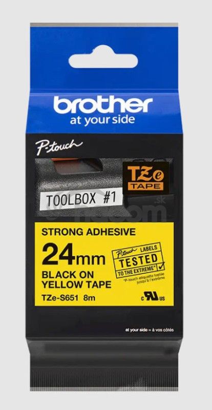 Originálna kazeta s páskou Brother TZe-S651 - čierna tlač na žlté, šírka 24 mmOriginálna kazeta s laminovanou páskou TZe-S651 kompatibilná so širokým radom tlačiarní Brother P-touch je obzvlášť všestranná vďaka svojej ľahko čitateľnej čiernej a žltej farbe - ideálna pre domácnosť domácnosti, kanceláriu a ďalšie pracoviská.
