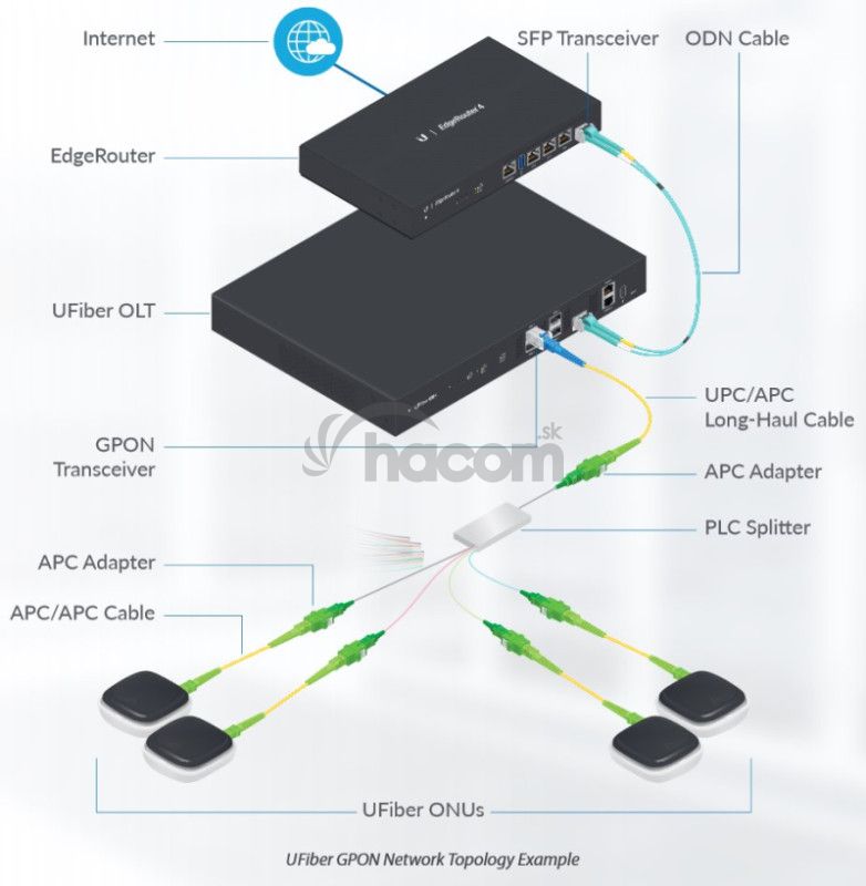 K jednému portu GPON je možné pripojiť až 128 zariadení WiFi UFiber a to až na vzdialenosť 20km. UFiber WiFi je možné použiť ako s UFiber OLT od Ubiquiti, tak aj s OLT zariadeniami tretích strán.