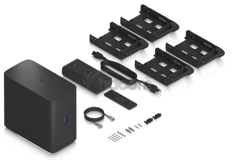 * UniFi Network Attached Storage s (4) 2.5/3.5" HDD sloty a (2) M.2 NVMe SSD cache sloty pre vysokú flexibilitu a výkon úložiska.