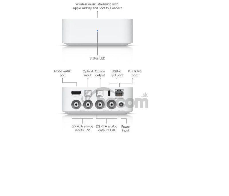 Ubiquiti UniFi Play PoE audio port WDigitálny sieťový audio streamer s ultrakompaktným, všestranným dizajnom a intuitívnym ovládacím systémom, ktorý podporuje viacero hudobných streamovacích služieb a škálovateľné viaczónové inštalácie.
