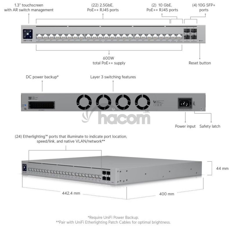 Ubiquiti UniFi Switch Pro HD 24 PoEUniFi Switch (USW-Pro-HD-24) je spoľahlivý L3 switch s manažmentom v profesionálnom prevedení určený pre montáž do racku 1U.