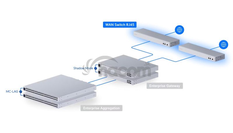 (Pre nasadenie s viacerými poskytovateľmi internetových služieb použite ďalší prepínač USW-WAN-RJ45.)