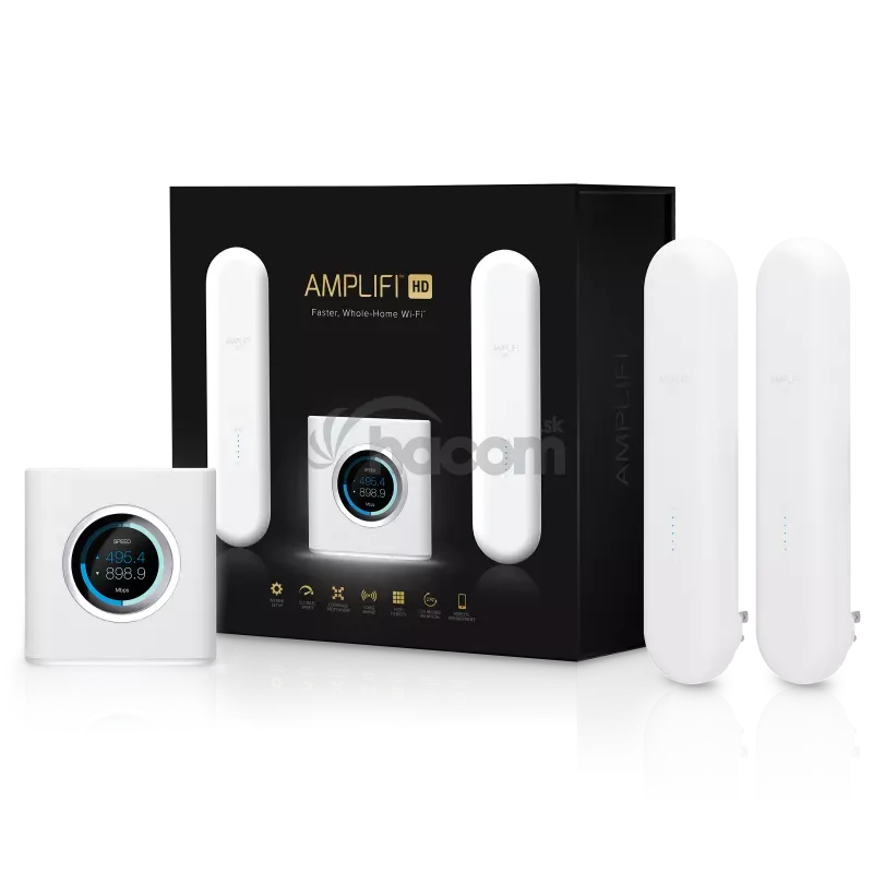 Popis produktuAmlpliFi HD nie je len bežný router, ide o kompletný ultimátnej systém, ktorý obsahuje router ako hlavnú jednotku a dve Mesh jednotky pre pokrytie priestoru až 1850 m2. V sade sú zariadenia s inovatívnym, moderným a elegantným dizajnom. Nastavenie celého systému je možné urobiť cez webový management alebo aplikáciu pre platformy iOS a Android.Samotný router disponuje 4x 10/100 / 1000Mbps LAN, 1x 10/100 / 1000Mbps WAN, USB portom pre nabíjanie Vášho telefónu, dotykovým LCD displejom, napájacím microUSB konektorom a 3x3 MIMO WiFi rádiovou časťou s modulačnými rýchlosťami 1300Mbps (5GHz) + 450Mbps (2.4 GHz).