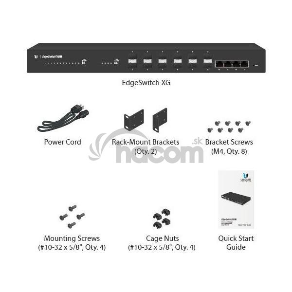 EdgeSwitch 16 XG je profesionálny 10gigabitový optický switch s 12 SFP + porty v rackovom prevedení 1U a webovým manažmentom. Výkonný switch je ideálny pre podnikové dátové centrá a rastúce vysokokapacitné siete.EdgeSwitch 16 XG má 12 gigabitových SFP + portov pre pripojenie do optickej siete a navyše štyri 10-gigabitové RJ45 porty podľa normy 802.3an-2006, to znamená podpora káblov 10GBASE-T pre maximálny prenos dát metalickou sieťou.