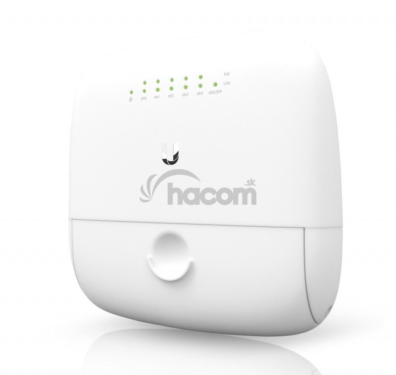 EP-R6Vonkajší router Ubiquiti EdgePoint Router 6 s piatimi gigabitovými LAN porty s možnosťou pasívneho napájanie ďalších zariadení 24V s odberom do 0,7A. Obsahuje 1 SFP port, súčasťou balenia je PoE adaptér 24V / 1,4A, podpora IPv6, vyrobený z odolného polykarbonátu, vďaka čomu je extra odolný.