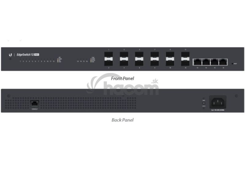 Gigabitový L2 opticko-metalický switch Ubiquiti EdgeSwitch ES-12F v 19 "rackmount prevedení, L3 routovacími funkciami as maximálnou spotrebou 56W. EdgeSwitch ES-12F je plne managovateľný switch sa 4x GLAN + 12x SFP portami a celkovú priepustnosťou 32Gbps.
