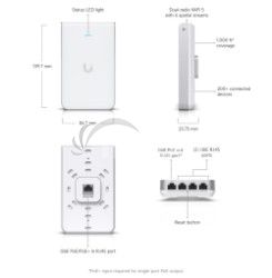 Popis produktuUAP-IW-HD je MU-MIMO ac Wave2 access point z rodiny UniFi, který je určený k zabudování do zdi. V pásmu 5GHz podporuje technologii 4x4 MU-MIMO s maximální modulační rychlostí 1733Mbps. Pro pásmo 2.4GHz je k dispozici radio s technologií 2x2 MIMO a modulační rychlostí 300Mbps.