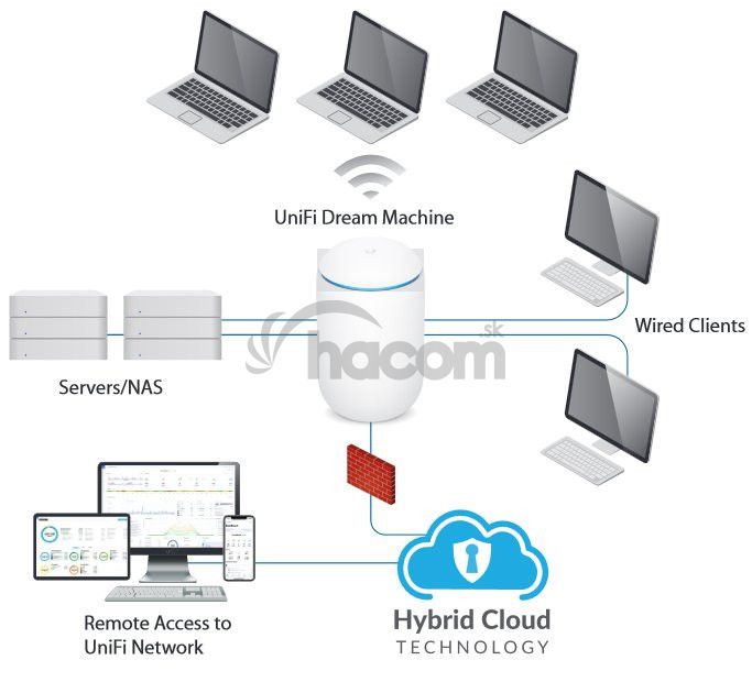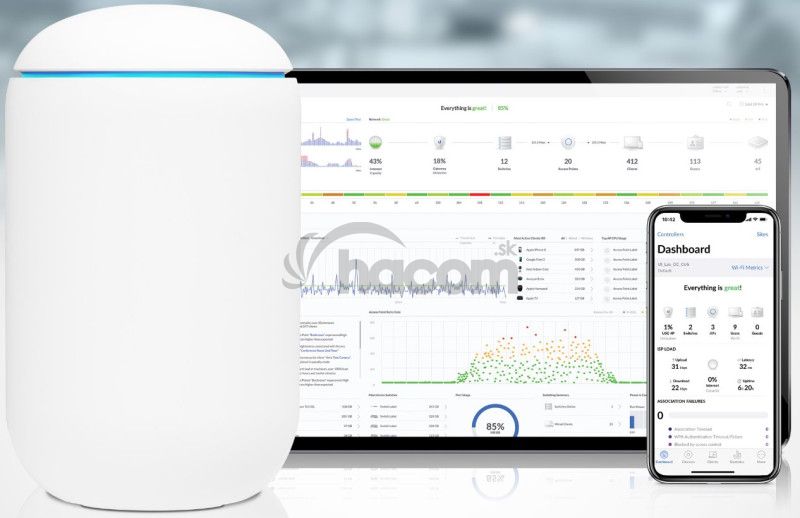 Popis produktuUniFi Dream Machine od Ubiquiti Networks je komplexní řešení sítě v domácností a malých kanceláří. Jedná se o velmi výkonné zařízení s 4-jádrovým CPU, 2 GB RAM a kombinuje všechny potřebné funkce do jedné elegantní krabičky, která zvládá: