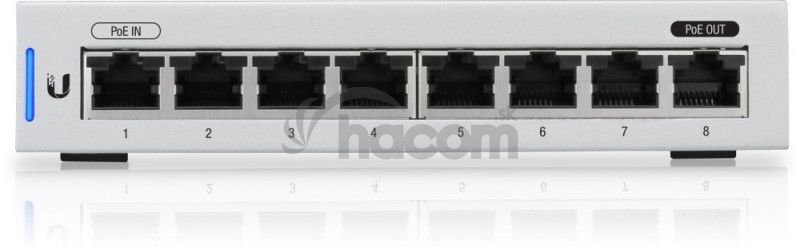 Opis produktuUS-8 je Gigabitový PoE switch od Ubiquiti Networks v desktop prevedení s jedným PoE IN a jedným PoE Out portom. Managovateľný switch s 8 gigabit metalickými portami a celkovú priepustnosťou 16 Gbps.Jeho najväčšou prednosťou je gigabitový POE IN na porte č.1 a výstupné POE Out na porte č.8. Switch je možné napájať ako aktívne (802.3af / at), tak pasívne (24V i 48V). Switch vie napájať ďalšie zariadenia na porte č.8 s maximálnou spotrebou 12W s rovnakým napájaním akým je napájaný switch.