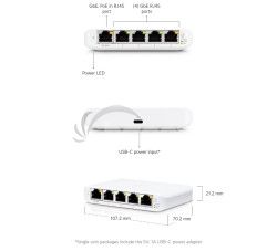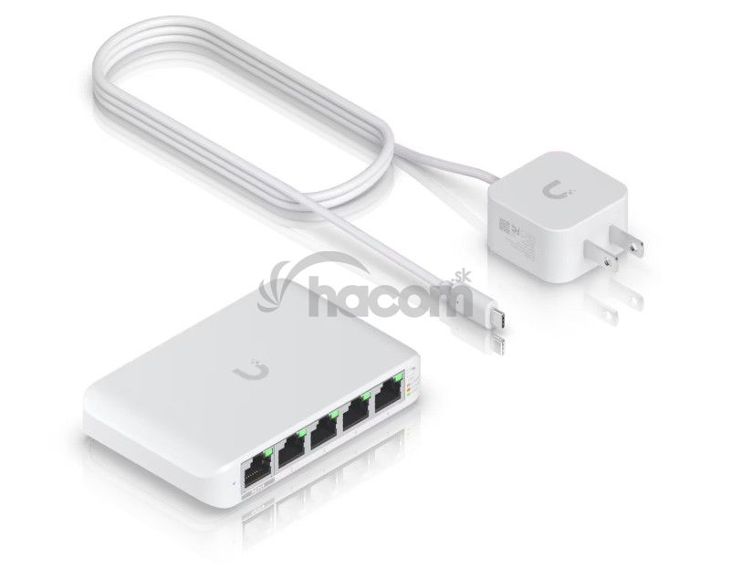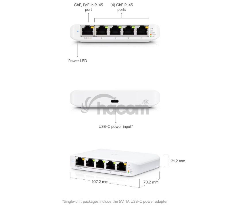 Usw-Flex-Mini UNIFEM Compact 5port Gigabit Desktop Switch.Vytvorte a rozšírte svoju sieť pomocou prepínača UNIFEM, ktorý je súčasťou systému Ubiquiti Networks® UNIFEM Enterprise System. UNIFEM Switch, model usw-Flex-Mini, je inteligentný Gigabitový prepínač. Ponúka 5 ethernetových portov RJ45 a poskytuje 1 Gigabitová prepojenie s vašimi zariadeniami. Zapojte usw-Flex-Mini pomocou priloženého napájacieho adaptéra USB Type-C alebo pomocou PoE Ethernet 802.3af v porte 1.