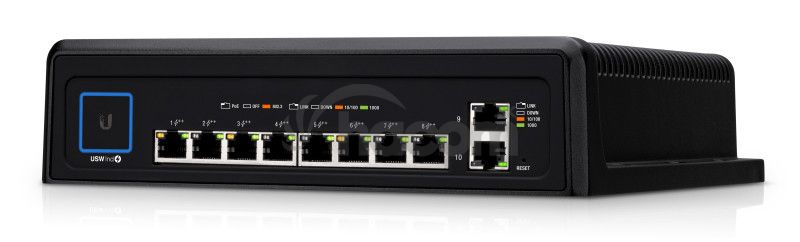 Usw-INDUSTRIALThe usw-Industrial is a managed Gigabit Layer 2 switch with auto-sensing, high-power 802.3bt PoE ++ support. It has 10 RJ45 ports total, 8 of which offer PoE ++ (up to 60W per port), ideal for Powering devices like UNIFEM LED Panels, cameras, and APs. Featuring a Ruggedized industrial design, the fanless usw-Industrial is plenum-rated * and can be installed in a horizontal or vertical orientation in plenum spaces. Its die-cast aluminum enclosure has a black, powder coated finish. This provides greater resistance to corrosion and durability in environments with extreme temperature Variations.