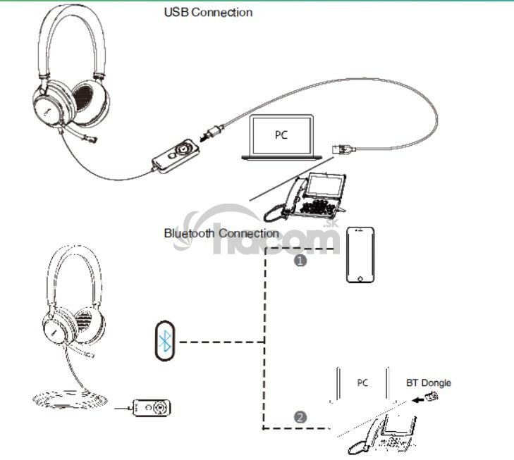 Podporovaný režim duálneho pripojenia USB-A a Bluetooth, bezdrôtový dosah Bluetooth môže byť až 10 m. Užívatelia môžu pripojiť a spravovať dva druhy hovorových zariadení súčasne a bezproblémovo prepínať medzi PC a mobilným zariadením a zlepšia efektivitu spracovania hovorov.