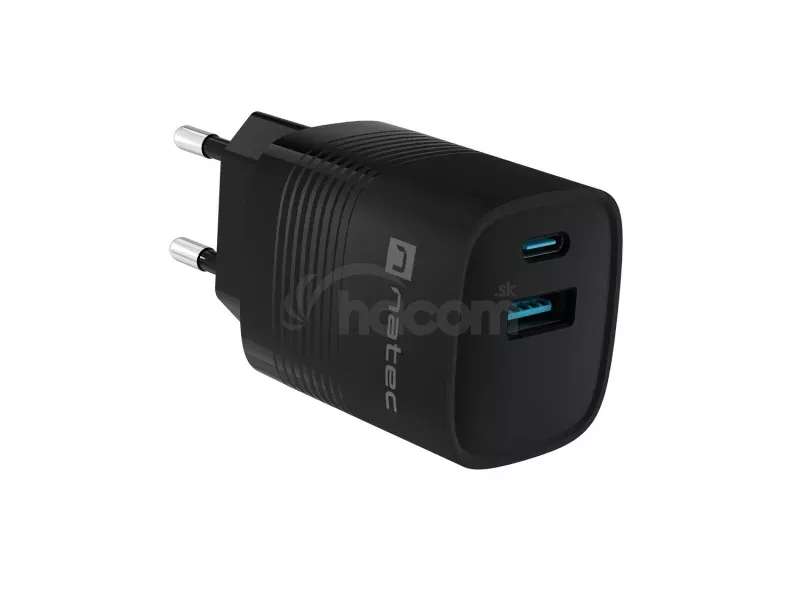 - Univerzálna USB nabíjačka Natec RIBERA GaN 1X USB-A + 1X USB-C 30W, čierna NUC-2141