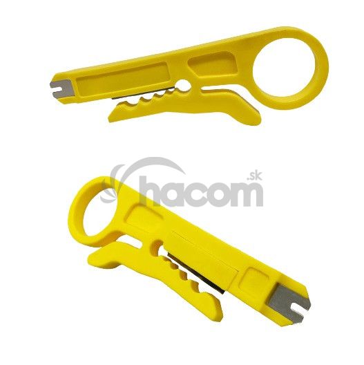 Univerzálny oddestilovaním nástroj pre UTP / FTP káble, Ekonomický stripovač UTP / FTP káblu - jednoduché orezanie vonkajšej izolácie UTP / FTP kábla. Na konci stripovacej je zapustený nôž, ktorý slúži na termináciu vodičov do svorkovníc.