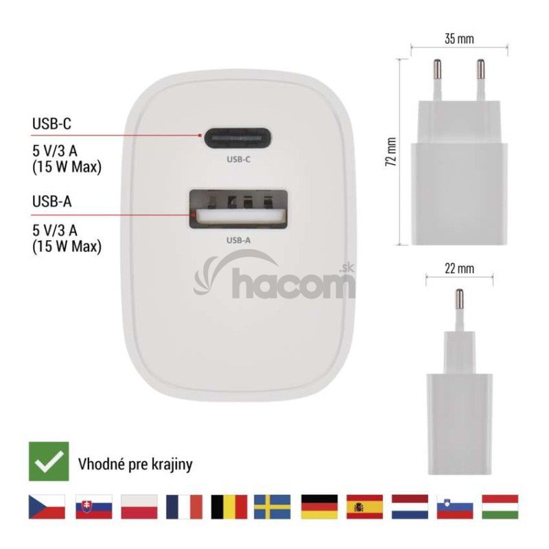 - Univerzálny USB adaptér BASIC do siete 15 W max. V02B15