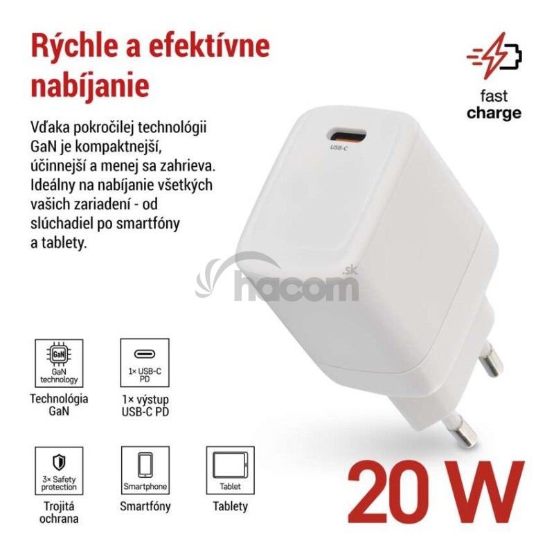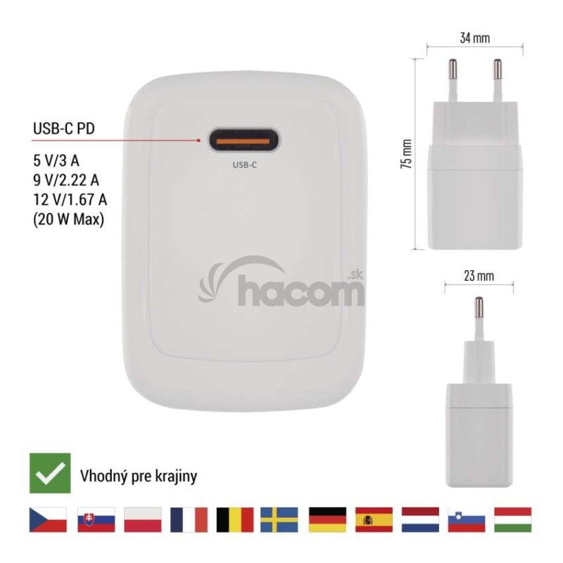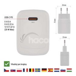 - Univerzálny USB adaptér GaN do siete PD 20 W max. V01G20