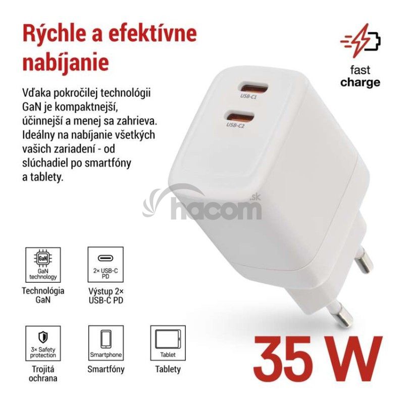 - Univerzálny USB adaptér GaN do siete PD 35 W max. V03G35