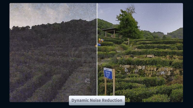 Dynamic Noise Reduction (Dynamické potlačenie šumu) - Potlačenie šumu znižuje zrnitosť alebo šum, ktorý sa môže objaviť na snímkach, najmä pri nízkom osvetlení alebo vysokých hodnotách ISO.