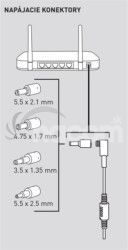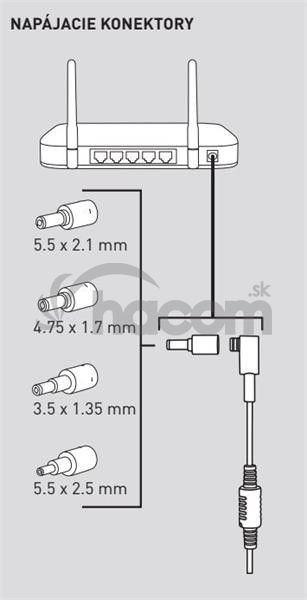ZDROJKeor DC je napájaný cez 230 Va.c. domácej siete a dokáže napájať väčšinu smerovačov a telefónov na trhu, pretože je vybavený 4 rôznymi napájacími konektormi.