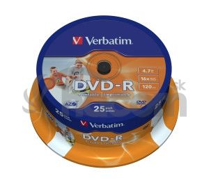 - VERBATIM DVD-R (25-Pack) Spindl / Printable / 16x / 4.7GB 43538